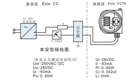 ● 本安參數:Ui:28VDC,Ii:93mA,Pi:0.65W,Ci:0.042uf, Li:0mH