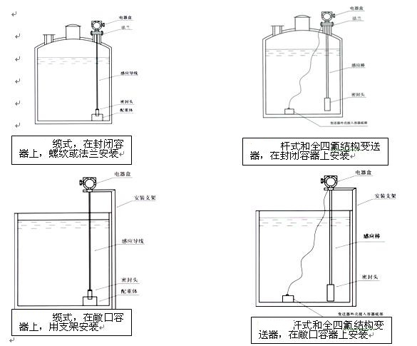 在測量流動性較大的介質時,為防止傳感器劇烈擺動,用戶可選用配重附件,以起到穩(wěn)定傳感器的作用,加配重時一定要要把配重物體放入容器底部,以免拉壞傳感導線 。
