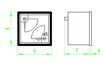 用于電網的電流電壓及頻率測量 環境溫度:-25℃ to +55℃ 外殼防護:IP42/52 耐振動:0.7g 儀表偏轉角:90° 240° 儀表標度尺:白色底黑色刻度如需設定值可劃紅線。 儀表安裝:用二個對角支架固定 | ![]() |