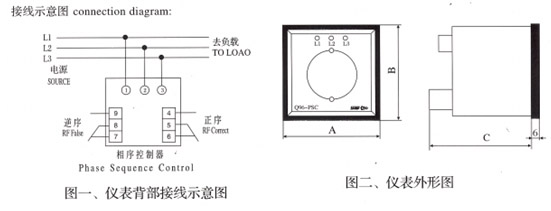 2. 當接入相線為正序時,批示燈亮點按順時針旋轉,同時正序繼電器延時吸合;反之,則指示燈亮點按逆時針旋轉,同時逆序繼電器延時吸合;兩繼電器有電氣連鎖。